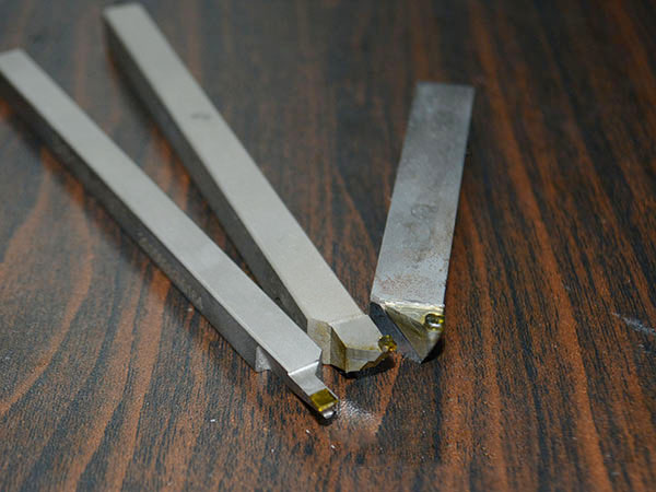 试验中,由于缺乏有效的晶体定向手段,只有通过对报废刀具的结构分析,大致判定刀具的晶面方向,然后通过刃磨过程中刀具与砂轮表面的接触力、接触声音等信息,兼顾砂轮速度、主轴往复运动速度和摆幅等参数,仔细寻找刀具合适的刃磨角度。当刃磨的声音比较沉闷吃力、手感机床有较大振动时,应立即退出刀具,避免刀体损伤砂轮,并重新调整角度。调节适当后,刃磨的声音比较轻快柔软,手感机床振动微小,并且连续上刀0.05mm,机床不会出现振动波动 。